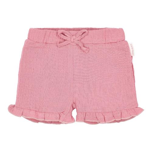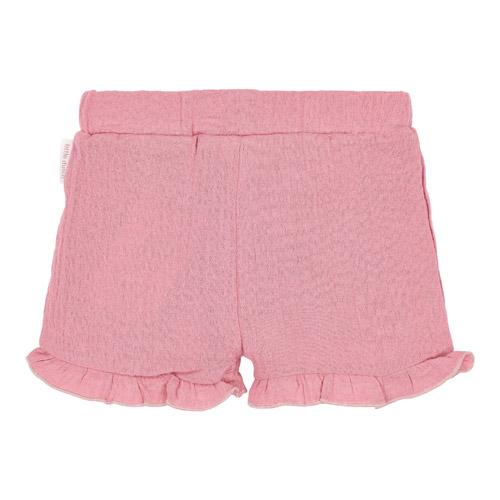 These sweet shorts are made of soft muslin fabric and feature adorable ruffles at the hem.