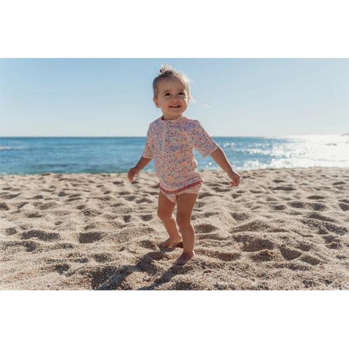 This adorable swim diaper combines functionality with a cheerful, summery look full of soft flowers and is perfect for sunny days at the pool or the beach.