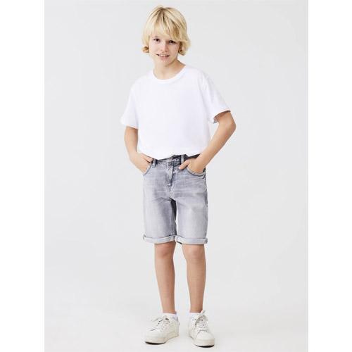 Give your son's wardrobe a stylish upgrade with the Lance B mid-waist slim fit light grey jeans bermuda.
