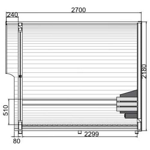 - Door in tinted, tempered glass 1770 mm x 590 mm x 8 mm.
