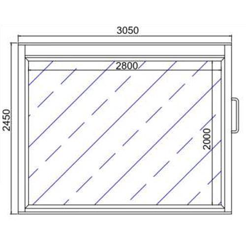 - Glass door on the side wall, with symmetrical opposing window and D-handle.