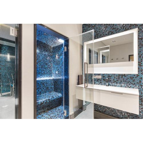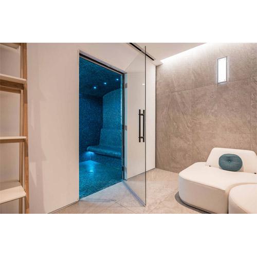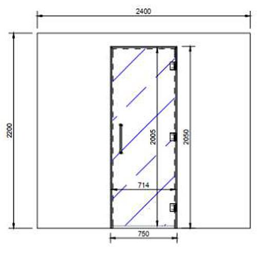 Porte vitrée de 2005 mm x 714 mm en verre trempé de 8 mm, encadrée d'aluminium et équipée de charnières de luxe.