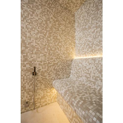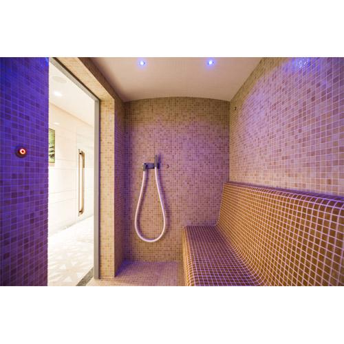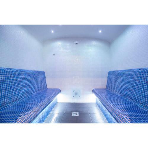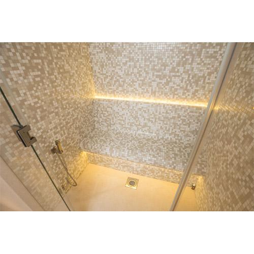 Murs, plafond et banquettes, prêts à recevoir le carrelage et les finitions.