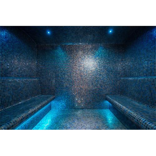 Bandeaux LED RGB sous les banquettes et 2 spots LED diamètre 40 au plafond.