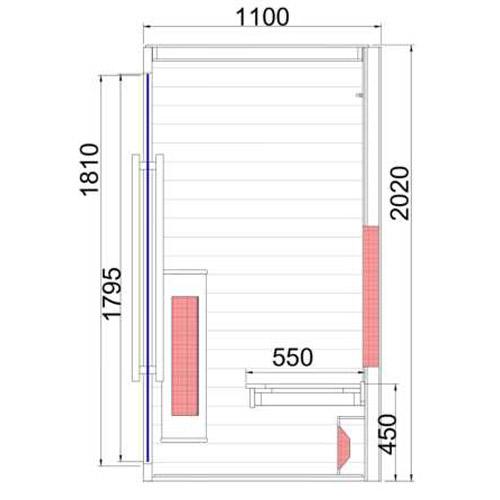 - Radiateurs infrarouges en quartz, sol chauffant, y compris des radiateurs rotatifs dans les murs latéraux.