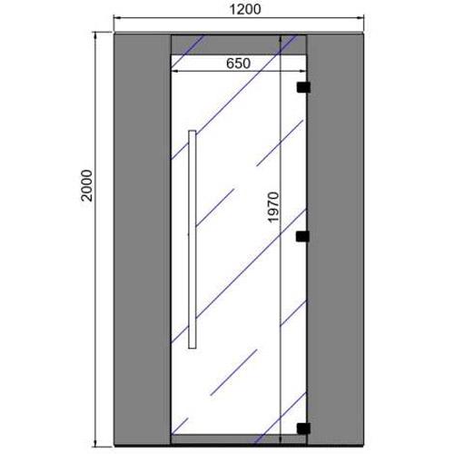 - Porte transparente en verre de sécurité 1970 mm x 650 mm x 8 mm avec ferrure laquée assortie à la couleur du MDF.