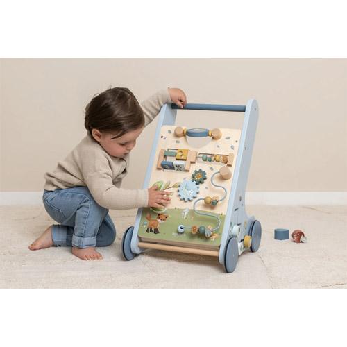 Ce trotteur d'activités en bois propose diverses activités stimulantes qui favorisent le développement de la motricité de votre enfant.