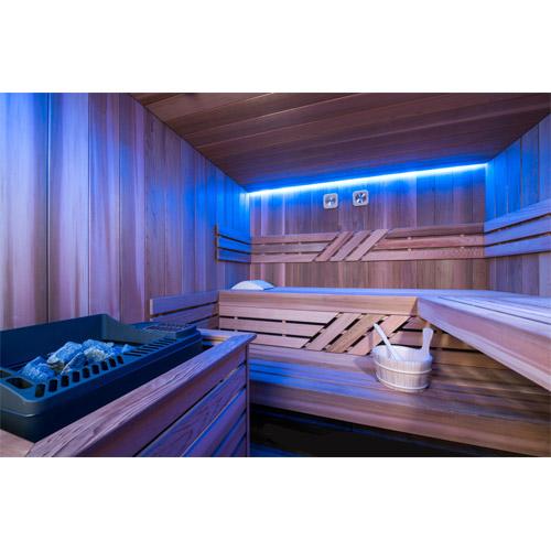 - La lumière LED indirecte dans le faux plafond, y compris la lampe de sauna.