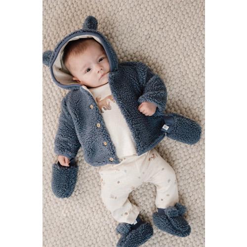 Fabriquées dans un tissu teddy ultra-doux et doublées de coton biologique, elles offrent un confort optimal et une protection contre le froid.