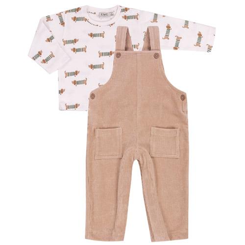 Combinaison bébé EMC combinaison de jardin écrue / t-shirt blanc avec chiens