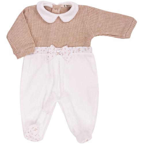 Combinaison bébé EMC écru/blanc avec nœud et col
