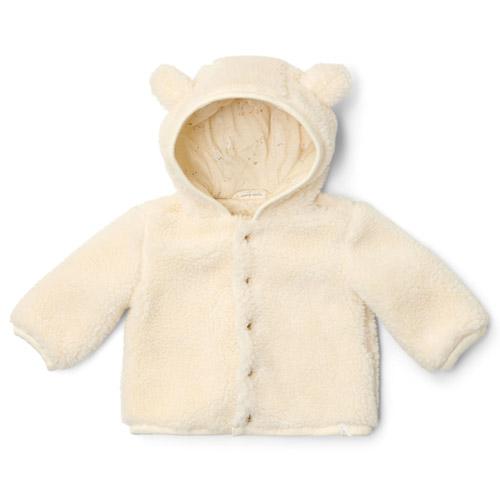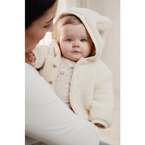 Elle est aussi chaude que confortable et est confectionnée dans un tissu en peluche off white avec de jolies oreilles sur la capuche.