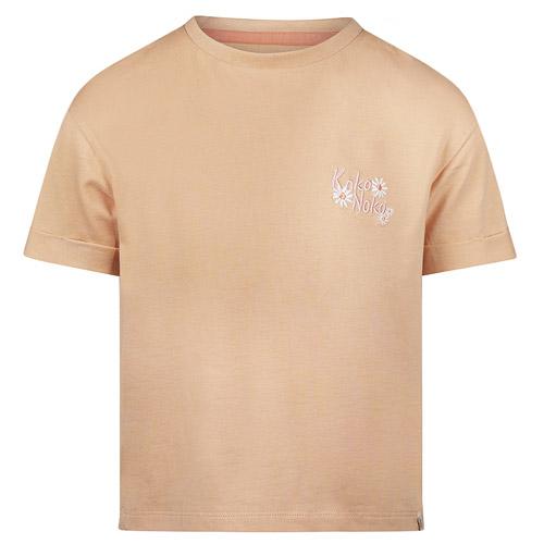 Dit Koko Noko t-shirt voor meisjes, in een warme zandkleur, is een comfortabele en stijlvolle keuze voor de zomer.