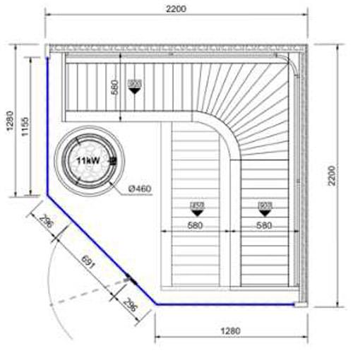 Sauna CHALEUR DE LUXE 220 cm x 220 cm x 200 cm vijfhoek