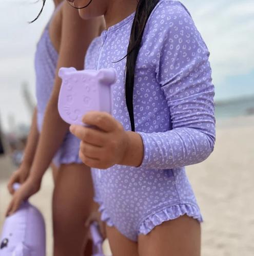 Badpak Swim Essentials lange mouwen lila panterprint OP=OP
