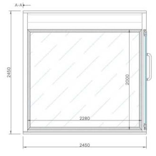 Steamless front wall, glass door on the side wall with D-handle, and symmetrical opposing window in double tempered clear glass with aluminium frame.
