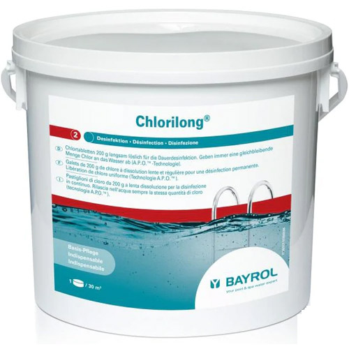 Use Chlorilong from Bayrol for continuous chlorination of the pool water.