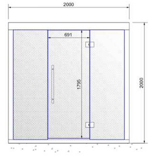 - Front in 8 mm clear tempered glass including door 690 mm.