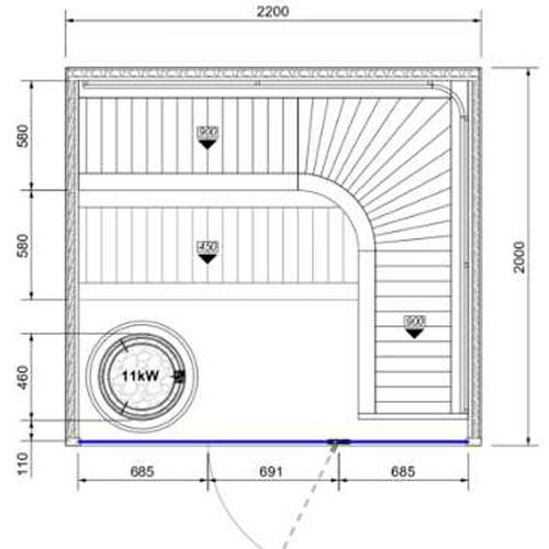 Sauna CHALEUR DE LUXE 220 cm x 200 cm x 200 cm