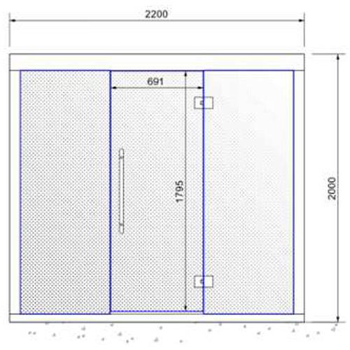 - Front in 8 mm clear tempered glass including door 691 mm.