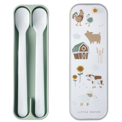 The spoon is narrow and shallow, making it easy for child to take a bite.