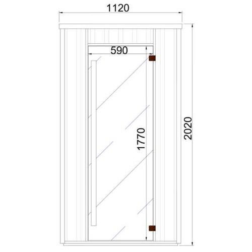 - Porte en verre de sécurité teinté 1770 mm x 590 mm x 8 mm avec charnières brunes et poignée en cèdre.