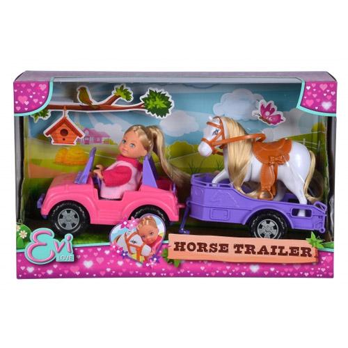 De roze jeep en bijpassende aanhangwagen passen perfect bij Evi's outfit.