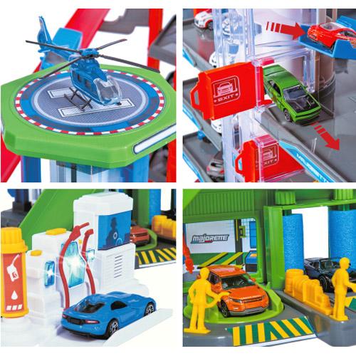 Garez toutes les voitures dans ce garage Majorette Super City, faite-les monter et redescendre par l'ascenseur.