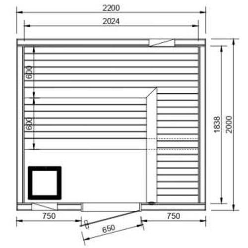 Cabine sauna 220 cm x 200 cm x 200 cm.