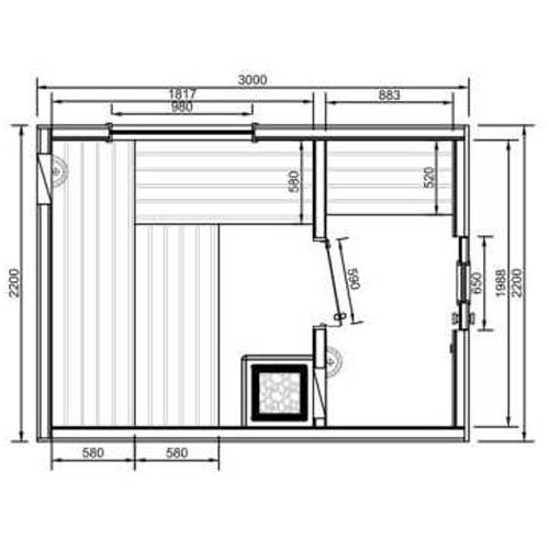 Sauna extérieur COMFORT 220 cm x 300 cm x 300 cm