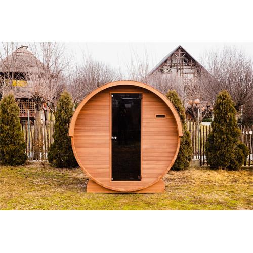 Sauna extérieur BARREL/ tonneau 240 cm long diam. 215 cm bois d'épicéa