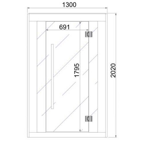 - Heldere veiligheidsglasfront met deur 1790 mm x 691 mm x 8 mm inclusief RVS hang- en sluitwerk.