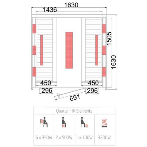 Infrarood cabine CHALEUR DE LUXE 163 cm x 163 cm x 200 cm