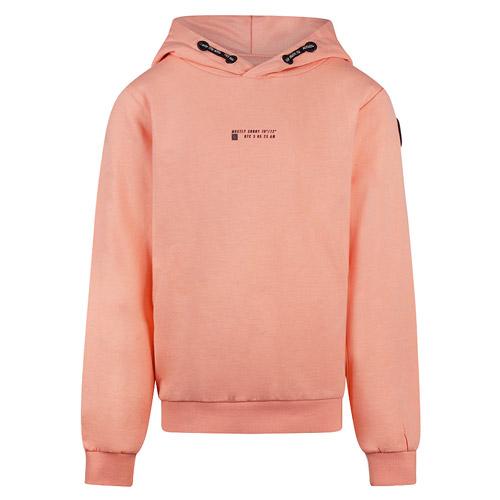 De No Way Monday hoodie in koraal is een comfortabele eyecatcher met capuchon en een kleine tekstprint op de de voorkant.